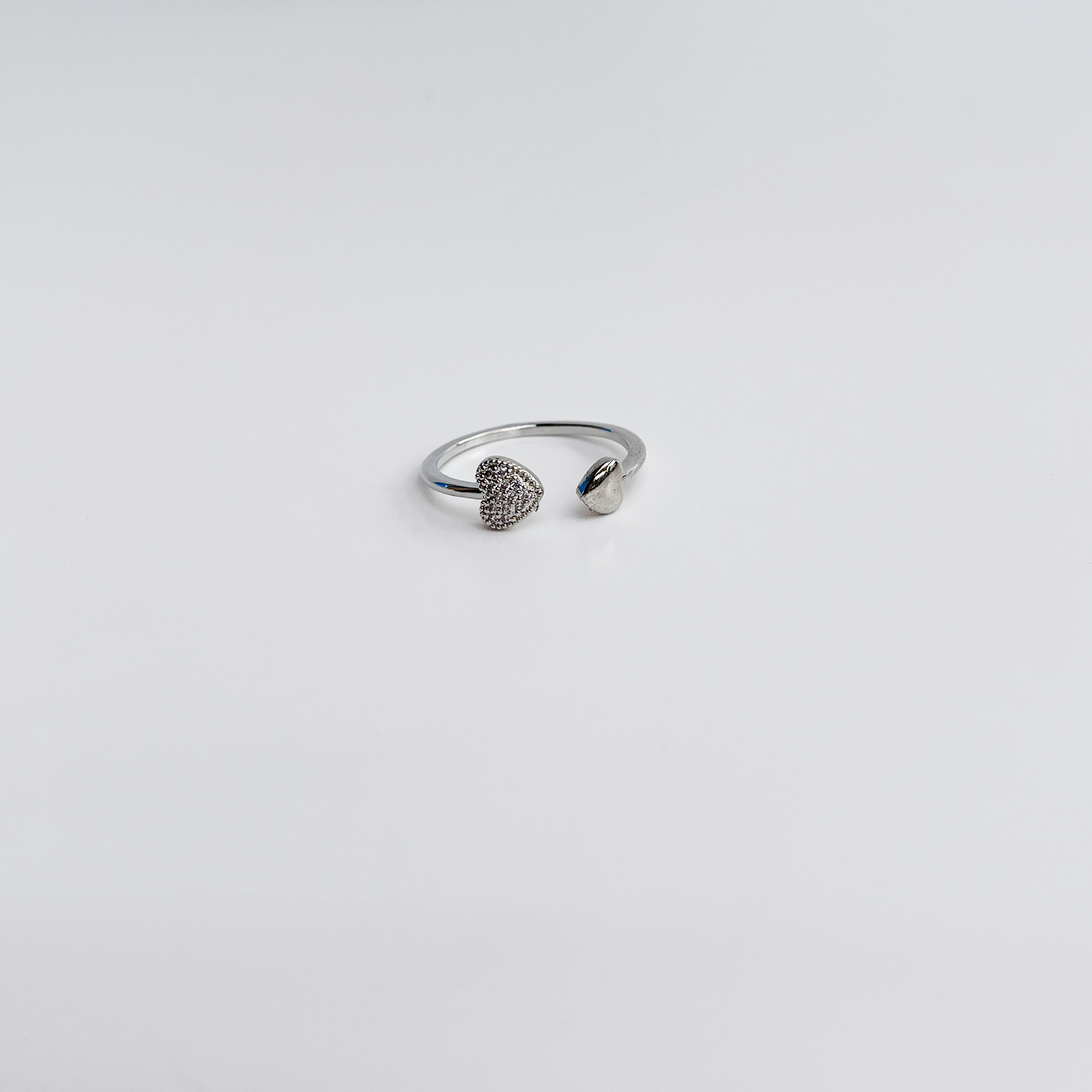 Embrace heartfelt elegance with the Cher ring featuring a textured heart alongside a glossy heart. The textured heart adds depth and character, while the glossy heart offers a contrasting smooth finish, creating a harmonious blend of textures. Whether worn as a romantic gesture or a stylish statement, this ring promises to captivate with its craftsmanship and meaningful design.