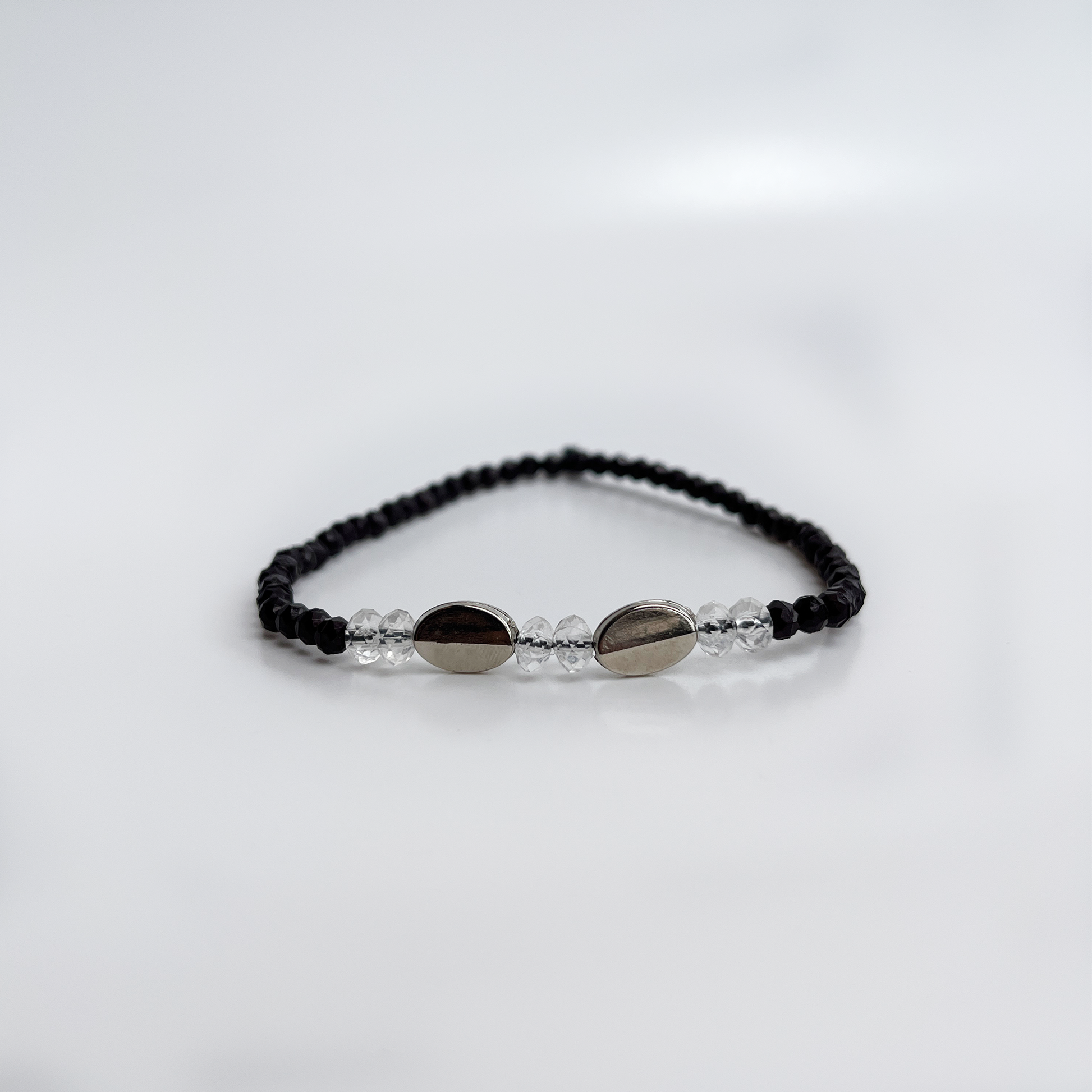 Elevate your ankle with this sophisticated anklet adorned with small black beads interspersed with lustrous pearls and crystals. The contrast between the sleek black beads and the shimmering pearls/crystals creates a striking yet elegant look, perfect for adding a touch of glamour to any outfit.