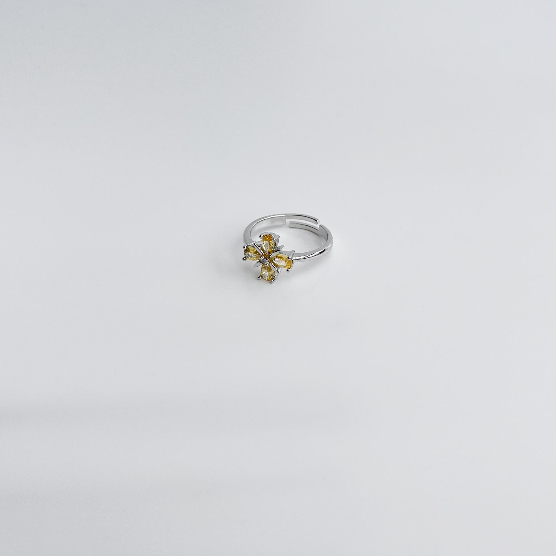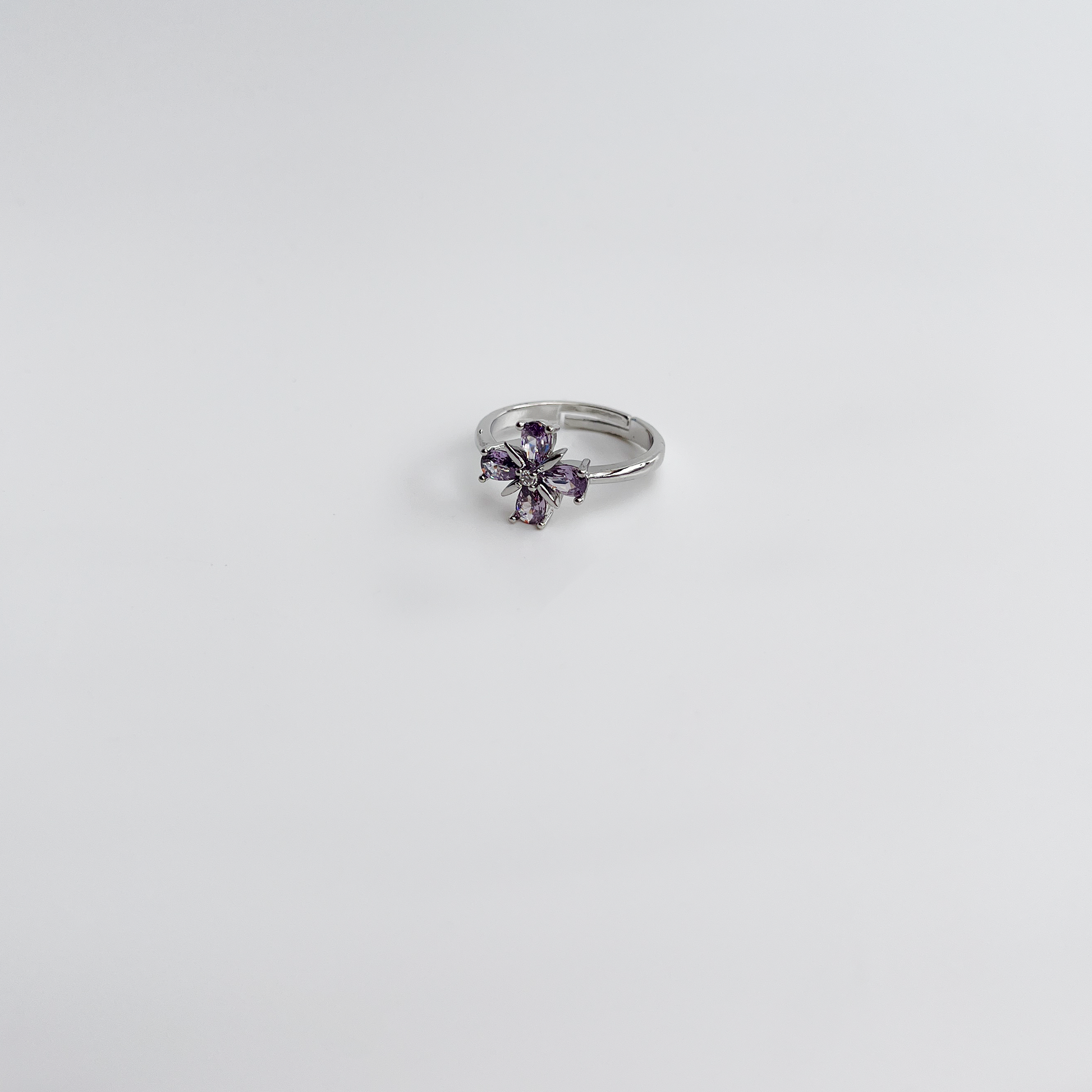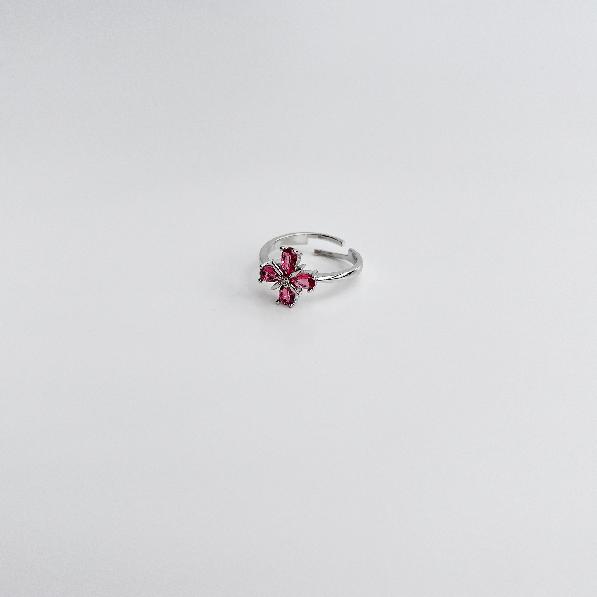 Celebrate nature's beauty with the Wildflower ring shaped like a delicate flower, featuring four petals adorned with vibrant colored stones. Each petal showcases a unique hue, creating a symphony of color and sparkle. The silver band elegantly complements the stones, enhancing their brilliance and charm.